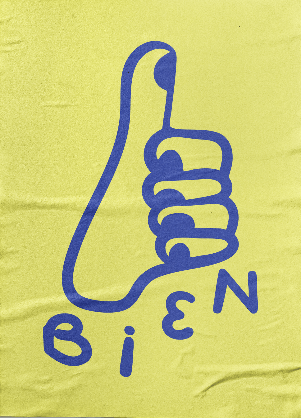 “Bien” started as a doodle, a quick thumbs-up sketch my partner drew one day, with the thumb on the wrong side.
